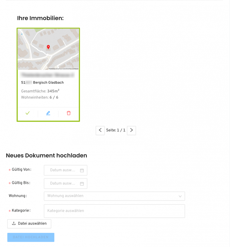 Sollten Sie nachträglich Dokumente zu Ihren Immobilen hochladen wollen, können Sie dies ebenfalls über die Dokumentenverwaltung tun.